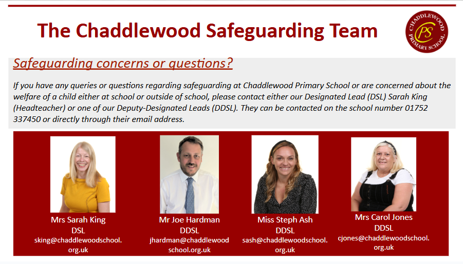 Keeping your children safe is our highest priority here at Chaddlewood Primary. The health, safety and well-being of every child are at the forefront of everything we do.