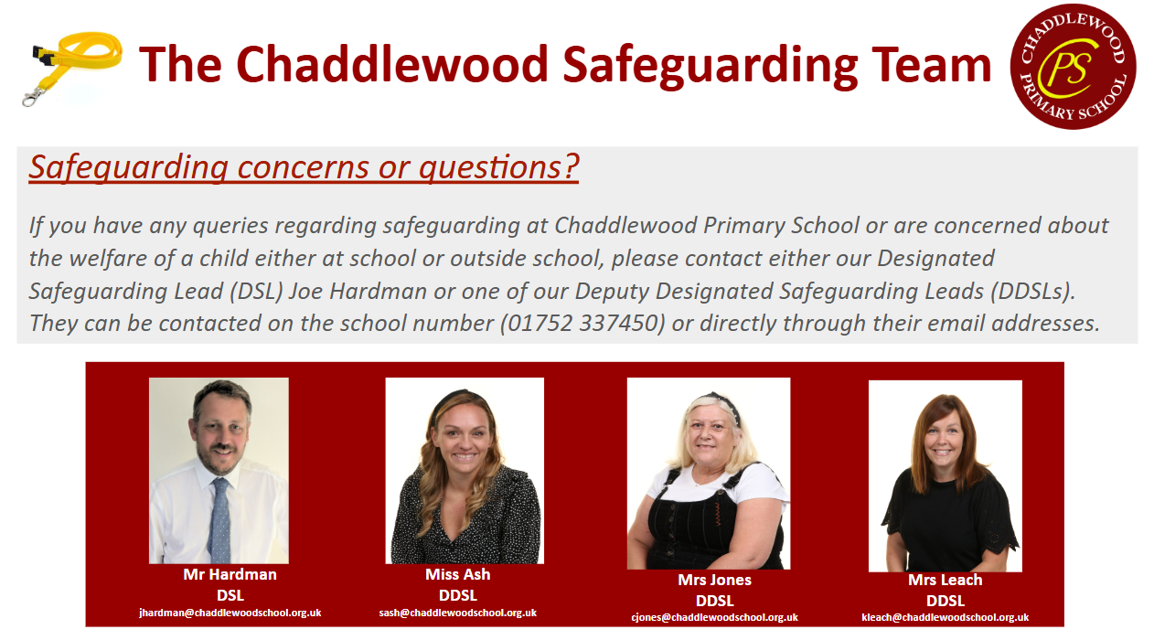 Keeping your children safe is our highest priority here at Chaddlewood Primary School. The health, safety and well-being of every child is at the forefront of everything we do.